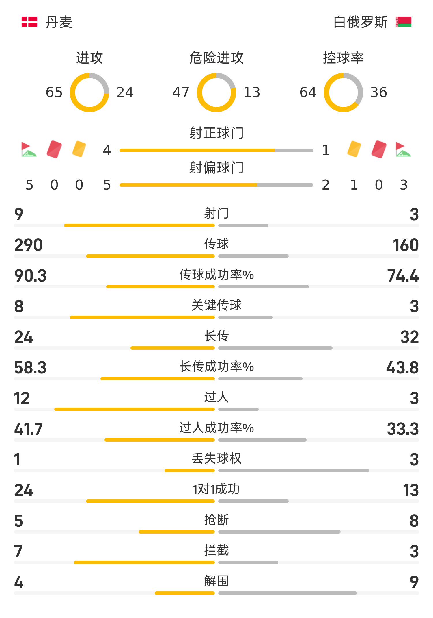 4’埃里克森主罚自由球直接打门,皮球被白俄罗斯人墙挡出