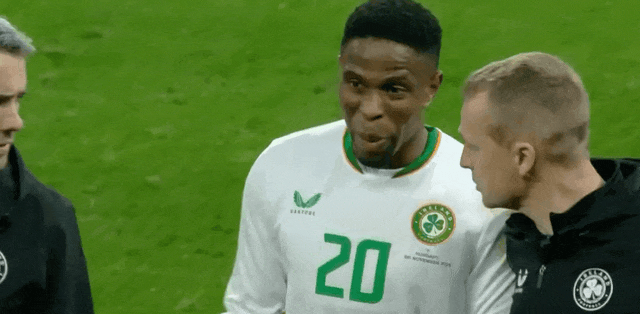 爱尔兰首发阵容:1-凯莱赫、4-奥谢、22-柯林斯、5-奥布莱恩(46’17-曼宁)、2-科尔曼(60’21-埃博塞勒)、6-卡伦(80’14-泰勒)、8-莫隆比(60’9-肯尼)、20-奥贝恩(53’10-伊达)、3-斯凯尔斯、11-阿扎兹、7-帕洛特