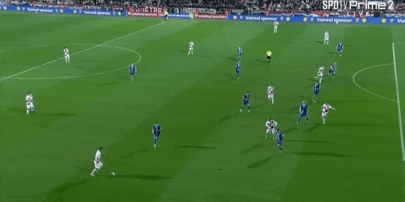 21’克罗地亚险些再度失守!法罗三秒区内无人盯防顶球吊射击中立柱弹出