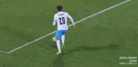 71’希门尼斯三秒区前沿抽射踢空,主裁判却吹罚乌拉圭后卫违例