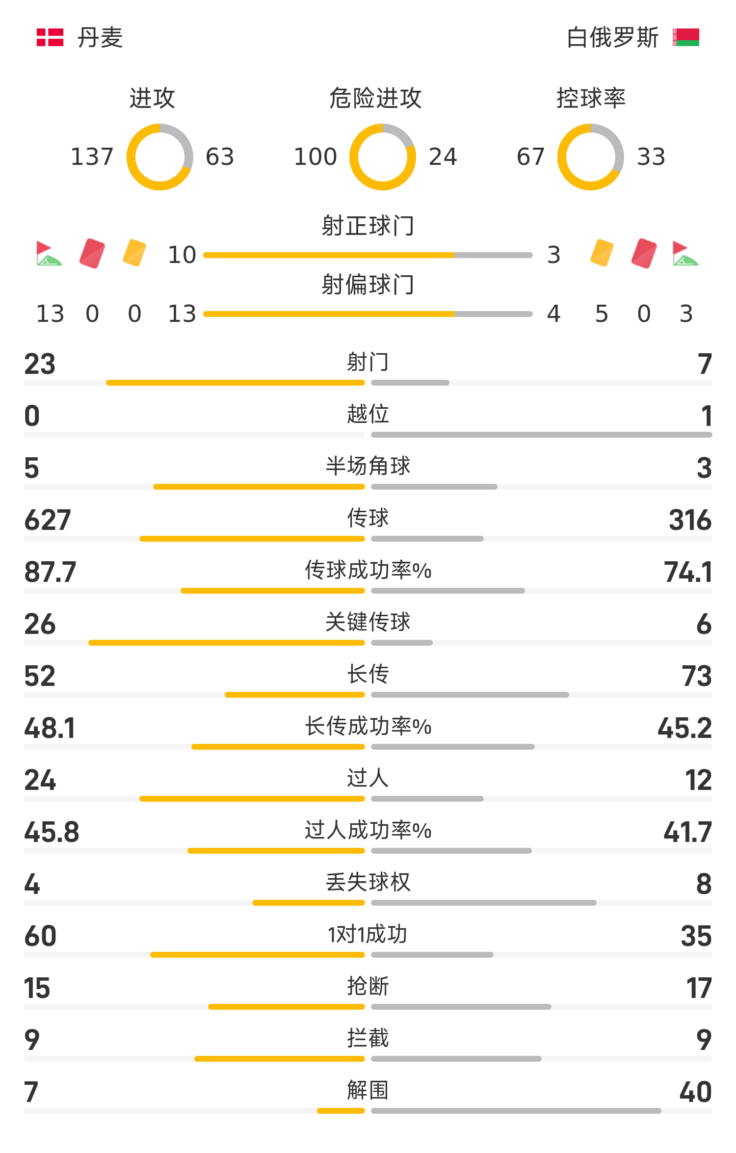 丹麦首发阵容:1-舒梅切尔、3-韦斯特高、6-克里斯滕森、13-克里斯滕森、17-多尔古、10-埃里克森(70’12-弗洛霍尔特)、15-诺尔高(70’21-尤尔曼德)、23-霍伊别尔、14-达姆斯高(90’18-比林)、8-伊萨克森(88’11-德雷尔)、19-温德(70’20-比瑞斯)