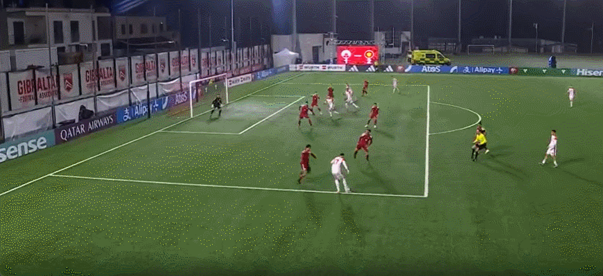 直布罗陀首发阵容:23-汉金斯、3-乔利、6-洛佩斯、5-安斯利(74’17-奥利弗罗)、14-罗南(81’7-巴托洛)、2-毛罗、22-托里拉(56’15-本特)、19-杰索普(57’11-理查兹)、4-波佐、8-斯坎伦、12-伯格(57’10-K.摩根)