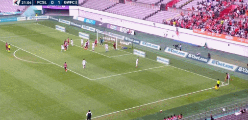 22’李胜模门前包抄甩头攻门,将皮球给直接顶偏