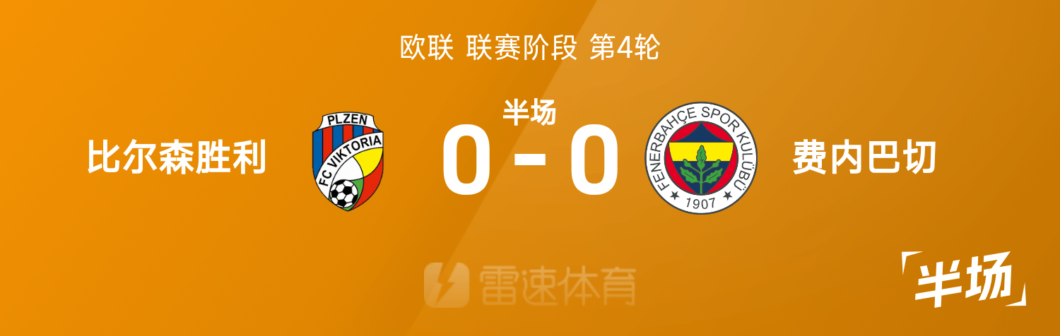 6686体育app11月07日讯 25/26赛季欧联联赛事阶段第4轮,比尔森胜出局迎战费内巴切。半场战罢,双方赛果分暂为比尔森胜出局0-0费内巴切。