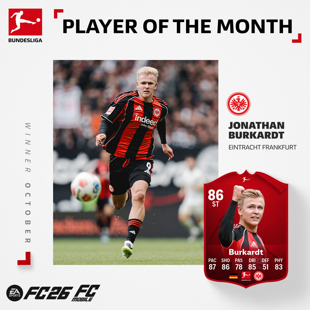在十月份的4场竞赛中,伯克特单人打入4粒进球,协助法兰克福取得2胜1平1负。