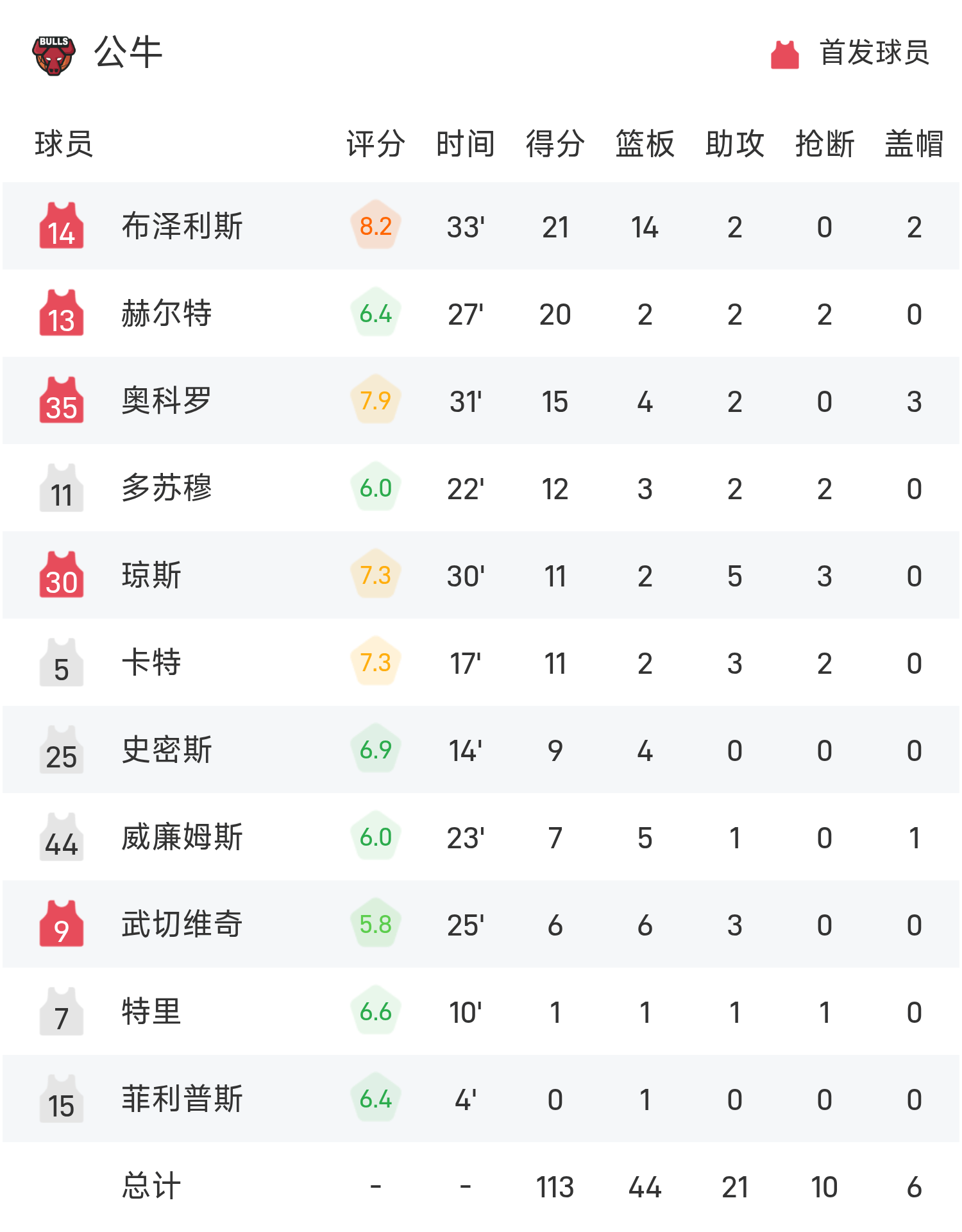 NBA战报:里德28分12板6助,活塞124-113击败公牛